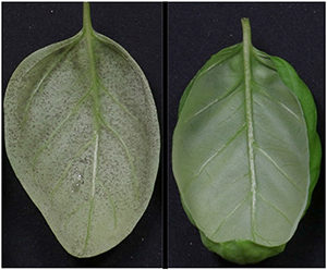 First, after determining that spice types of basil were less susceptible to downy mildew than the more commonly grown sweet basil, breeders were able to start finding resistance genes to breed into basil, a process that can take many years. There are now several resistant basil varieties that are commercially available but recent observations are finding that downy mildew is more severe than expected.