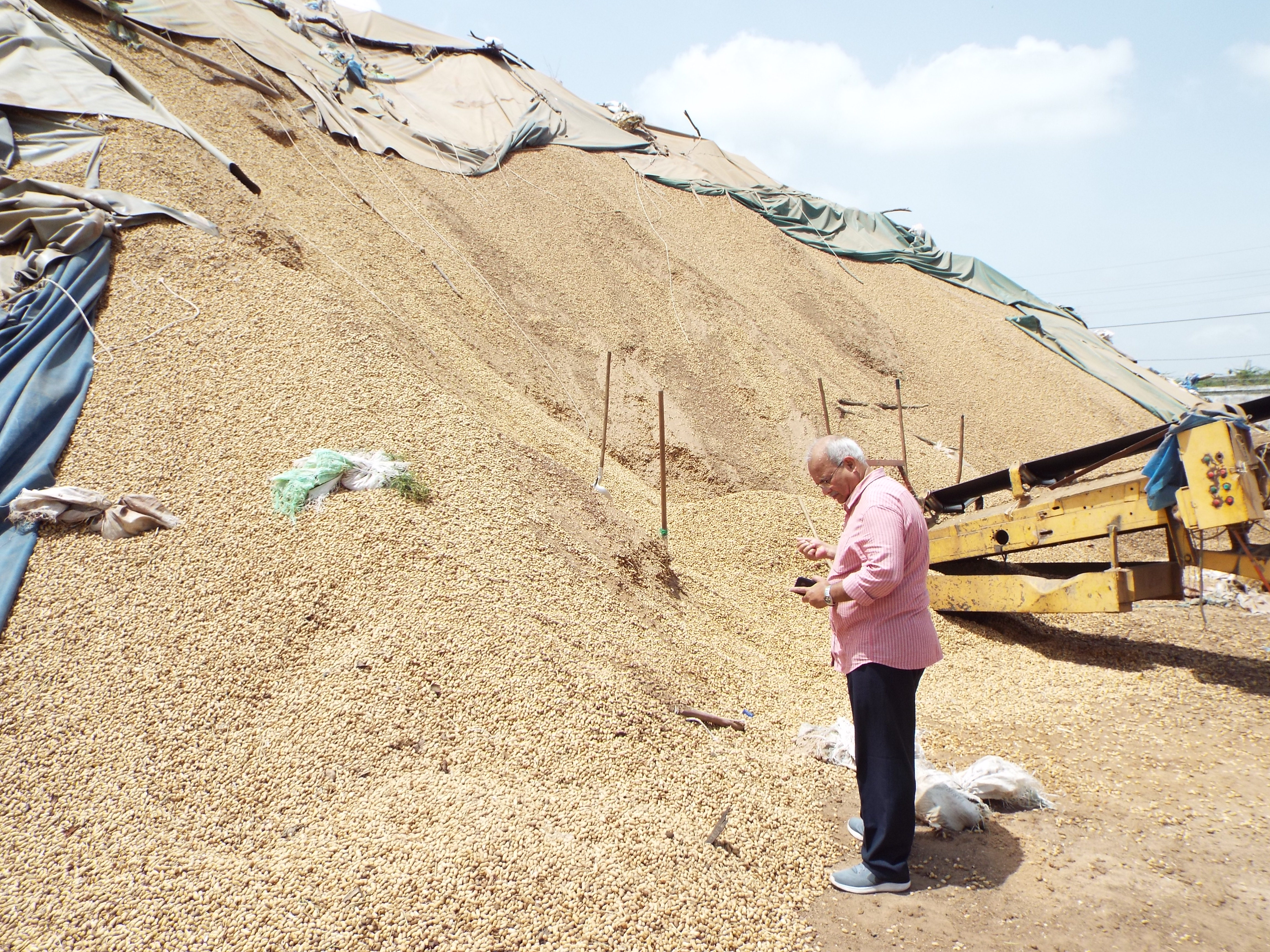 Ranajit Bandyopadhyay in front of groundnut pile.