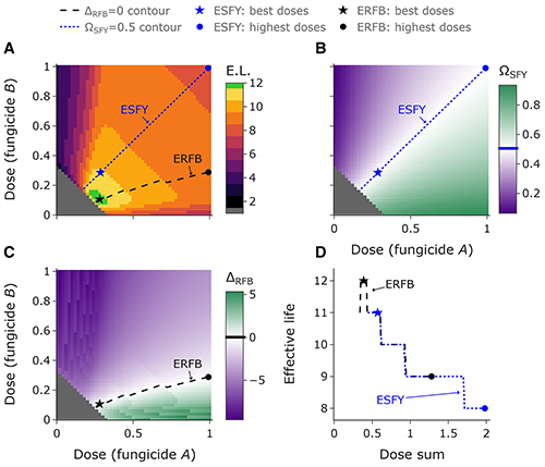 For additional details, read Optimal Resistance Management for Mixtures of High-Risk Fungicides: Robustness to the Initial Frequency of Resistance and Pathogen Sexual Reproduction published in Vol. 113, No. 1 January 2023 of Phytopathology.