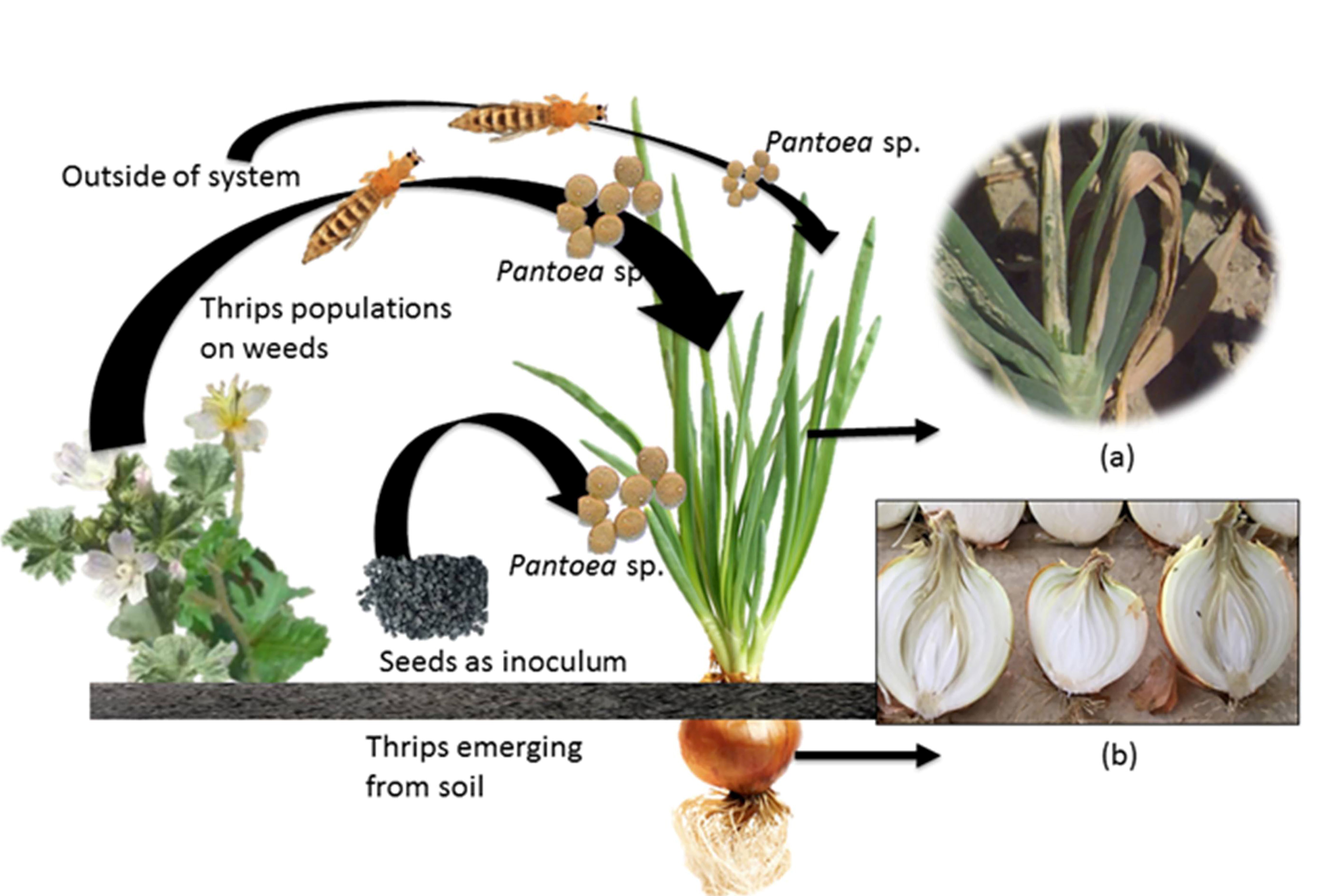 P. agglomerans, causal agents of center rot of onion (Allium cepa), by onion thrips (Thrips tabaci) through feces. Phytopathology 104:812-819.