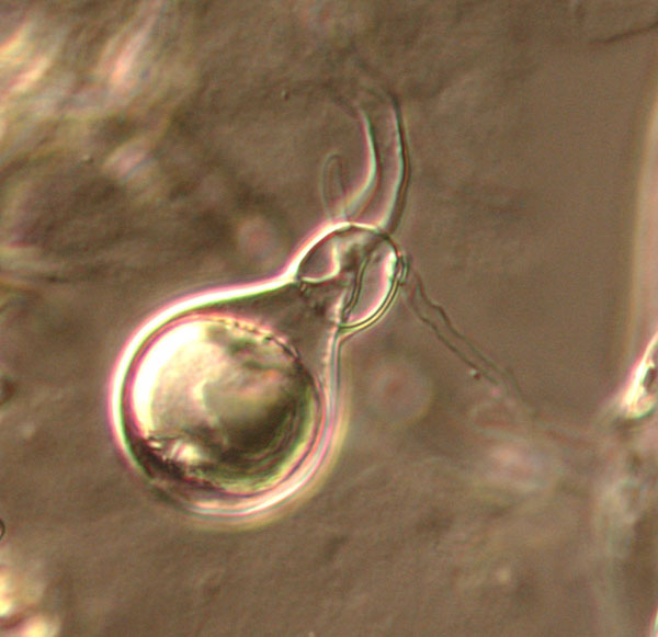 The Oomycota have long been considered fungi because they obtain their nutrients via absorption and many of them produce the filamentous threads known as mycelium characteristic of many fungi. The Oomycota now are classified as a distinct group based on a number of unique characteristics (Table 1). All members of the Oomycota undergo oogamous reproduction, meaning that diploid oospores are produced as zygotes following fertilization of haploid oospheres by haploid gametes. These oospores may be large and solitary (Figure 1) or smaller and numerous inside the oogonium. None of the true Fungi produce oospores.
