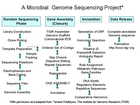 The goal of genome sequencing is the production of a map that identifies the linear arrangement of all bases in an organism's DNA. Obtaining such a map is not a trivial undertaking; however, technical advances in sequencing and data processing continue to reduce the time and expenses involved. The complete sequencing of a 2.5-Mbp genome presently can take less than six months at a cost of less than $500,000.