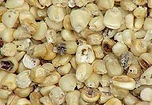 In Mississippi in 1998 a severe drought resulted in high aflatoxin contamination. These losses were in irrigated as well as dryland corn, and were particularly onerous for farmers who had just planted corn for the first time. Twenty per cent of the 50 million bushel crop had aflatoxin levels of 20 to 150 ppb and was sold at a discounted price. Another 4 percent was abandoned because it contained over 150 ppb. However, initially, approximately 50 percent of the crop was contaminated to the extent that many samples over legal limits. Half of that amount was eventually sold for feed by farmers. Little of Mississippi corn is used directly for human consumption. Probe samples taken from truckloads for aflatoxin analysis of corn are generally smaller than optimal, and more likely to be near 5 pounds than near 50 pounds. This is considered necessary to maintain the commercial flow of commodity (Erick Larson, Mississippi Agricultural and Forestry Experiment Station, May 2001, personal communication).