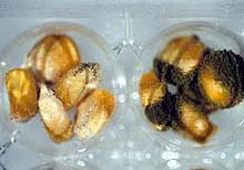 In south Texas, Jeff Nunley estimated that testing costs alone could be as high as $150,000 for each of two major cottonseed processors that use cottonseed originating from south Texas. Cottonseed that contains high aflatoxin levels is segregated and processed separately leading to additional costs at the processor level. These increased costs are ultimately reflected in lower values for cottonseed at the producer level. During the 1999 crop year, only about 30 percent of the cottonseed tested at the major cottonseed processing mills in south Texas had acceptable levels of aflatoxin (Table 1). While not all processors formally discounted their price for aflatoxin-contaminated cottonseed, discounts of $20 per ton for contaminated seed were common with some discounts being larger. Based on an average $20 per ton discount, the loss of value to south Texas cotton producers for the 1999 crop from aflatoxin-contaminated seed would be slightly over $7,000,000. With a harvested acreage estimated at 960,000 acres this loss equates to approximately $7.30 per harvested acre. In south Texas, contaminated cottonseed may be processed at an oil seed mill for crushing so that some value is recouped on the contaminated crop, or it may be sent to Indigo, California for ammoniation, or finally contaminated meal may be used for mushroom fertilizer.