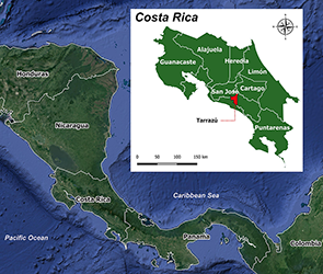 Coffee is a major export in many Latin American countries. Mountain slopes in Costa Rica—a country located in Central America (Fig. 3)—have a mild climate that is well suited for producing high-quality coffee (Coffea arabica) beans. Tarrazú, a mountainous region in Costa Rica known for its high-quality coffee bean industry, has two well-defined seasons: the dry season (mid-November to mid-April) and the rainy season (May to mid-November).