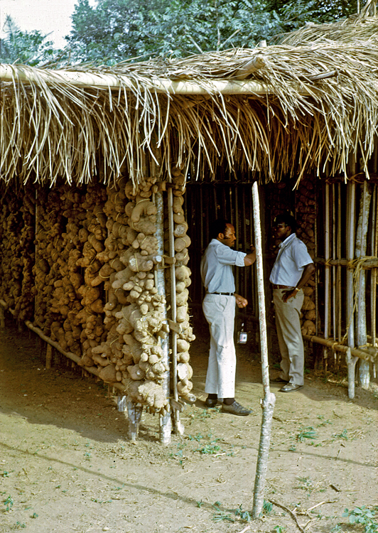 C14.10. Yam (Dioscorea species) storage in Nigeria. Note how the yams are spaced for drying and up off the ground. (African yam is a different plant from sweet potato, which originated in the Western Hemisphere.)