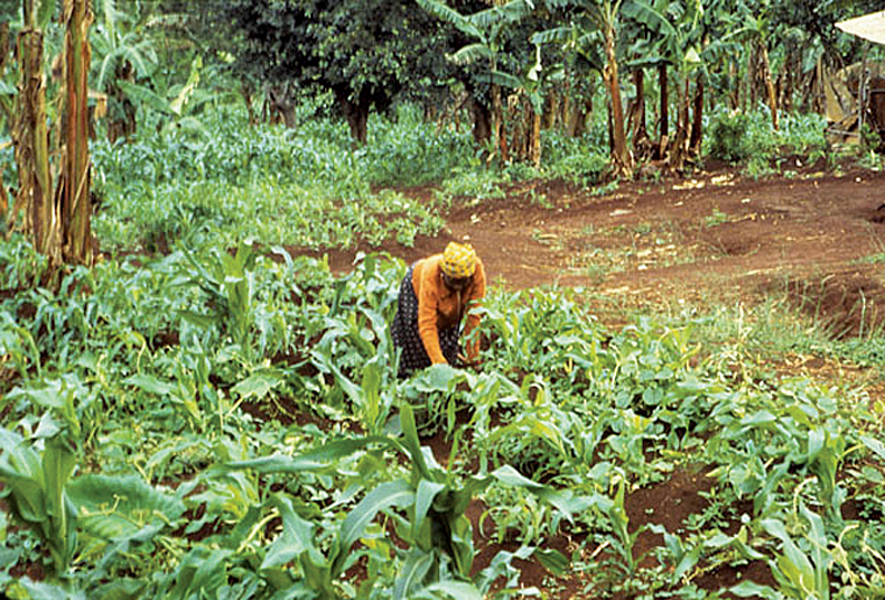 | C14.19. Polyculture: mixed cropping (seven different crops, including banana, cassava, maize, peanut, squash, and others). |