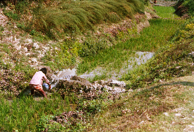 C14.4. Boy irrigating rice by hand (Bangladesh). |