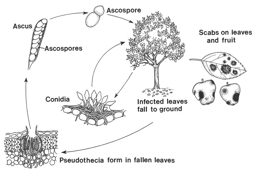 Disease cycle of apple scab caused by Venturia inaequalis.
