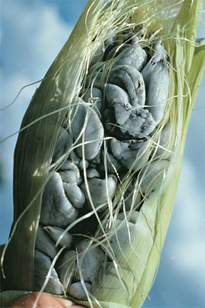 Views: Corn smut is a remarkable disease caused by the basidiomycete fungus, Ustilago maydis. In its early stages, corn smut is a highly prized edible fungus, sometimes called “the smoky maize mushroom.”. Click image for an enlarged view and more information. |