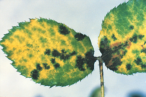 Views: Black spot of rose is a very important disease that is caused by a fungus called Diplocarpon rosae. The symptoms of this disease are highly diagnostic. Under certain conditions, the disease can cause a very unsightly appearance of the entire plant and even complete defoliation. Click image for an enlarged view and more information. |
