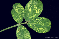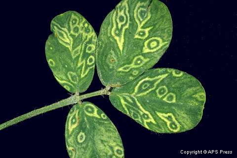 Views: Concentric ringspots are a prominent symptom on peanut plants infected by Tomato spotted wilt virus (TSWV). TSWV infects a wide range of horticultural and agronomic hosts and causes serious disease losses in both greenhouse and field situations. Click image for an enlarged view and more information.