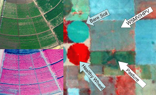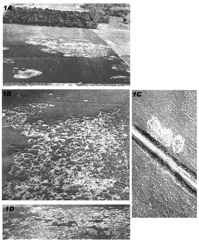 Pictures can be very useful in science and have been so for over seventy-five years. In 1927, pilots with the US Army Air Corps (a former name for the Air Force) told scientists at Texas A&M about large dead areas they had seen in cotton fields near the university. These dead areas were caused by a fungus that attacks the roots of the cotton plants (Phymatotrichum omnivorum). The scientists had been studying this disease but had difficulty measuring how severe the disease was in individual fields. The pilots took one of the scientists up in their plane, and they took photographs of the dead spots. From the photographs, it was easy to measure how much of the cotton in the field had been killed (Fig. 1). Before that, the only way to measure disease incidence was to count the number of cotton plants that had been killed. The photographic evidence of Phymatotrichum root rot was impressive, because humans are very visual in nature. Thus, images convey a great deal of information quickly.