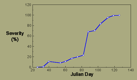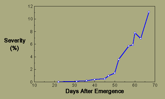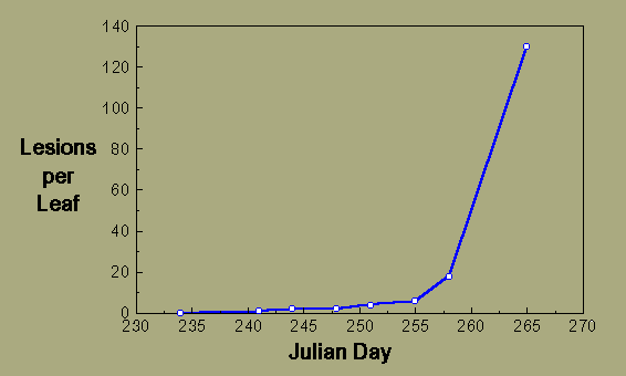 On the other hand, in bean rust (Uromyces phaseoli) and grey leaf spot of corn (Cercospora zeae-maydis), there is a definite upward curve; that is, disease increases at an increasing rate, a curve we could call exponential.