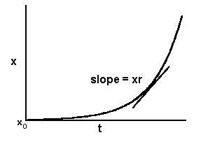 where x0 is the proportion of disease at the start of the epidemic and e is the base of the natural logarithm. Vanderplank (1963) called r the "apparent infection rate" because it is based on the appearance of disease symptoms, which lag behind the actual infections. It is defined as the rate of disease increase per unit of disease and has the units of proportion per unit of time. The parameter x0 is sometimes carelessly called initial inoculum, to which it is quantitatively related, but strictly speaking it is the initial disease (a proportion). Graphically the model has the familiar form of the exponential model: