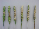 Trichothecene contamination is economically important in wheat, barley, oats, and maize. Fusarium graminearum (sexual stage Gibberella zeae) is the leading cause of DON contamination in maize and small grains in the United States. The fungus causes a disease of wheat and barley known as Fusarium head blight [Figure 14] and a disease of maize known as Gibberella ear rot [Figure 15]. Infected wheat spikelets exhibit premature bleaching as the pathogen progresses within the head and the developing grain becomes contaminated with DON. Maize ears infested with F. graminearum are often covered with a pinkish fungal mycelium as the maturing kernels become contaminated with DON. Click here for a plant disease lesson on Fusarium head blight.
