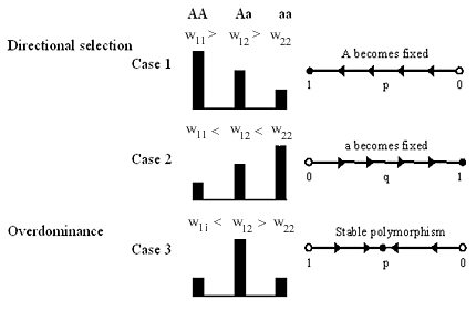 | Figure 19. Overdominance occurs when the heterozygote has a higher fitness than either homozygote. |