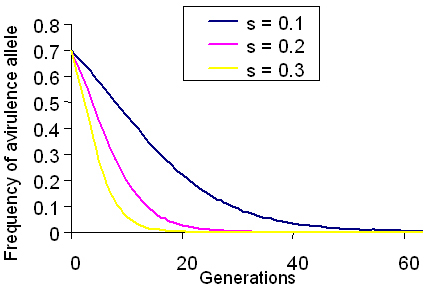 The following example illustrates selection against a dominant allele. This form of selection operates against an avirulence allele when the pathogen encounters a resistance gene that recognizes the elicitor encoded by the avirulence allele if avirulence is dominant.