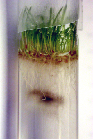 Continued growth of creeping bentgrass. The creeping bentgrass seed should germinate in 7-10 days. Remove parafilm 14 days after assay set-up from the bentgrass tubes. (Laboratory Instructor's Note #8)