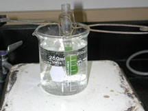 Figure 9. Heating the sample in a boiling water bath. Glass beads or boiling chips in the water will prevent "bumping" of the water. (Courtesy R. Ford)