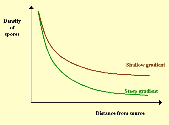 Examples of spore dispersal gradients. Click image for an enlarged view. |