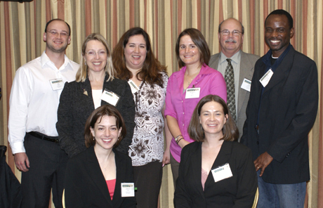The 2009 APS Education Fellows presented their perspectives on the state of plant pathology education and provided new approaches for consideration. Pictured left to right (standing): Tim Durham, Caitilyn Allen (committee member), Kristina Owens, Michelle Moyer, Jim MacDonald (workshop organizer), and Olufemi Joseph Alabi; (seated): Lindsay Triplett and Kim Webb.